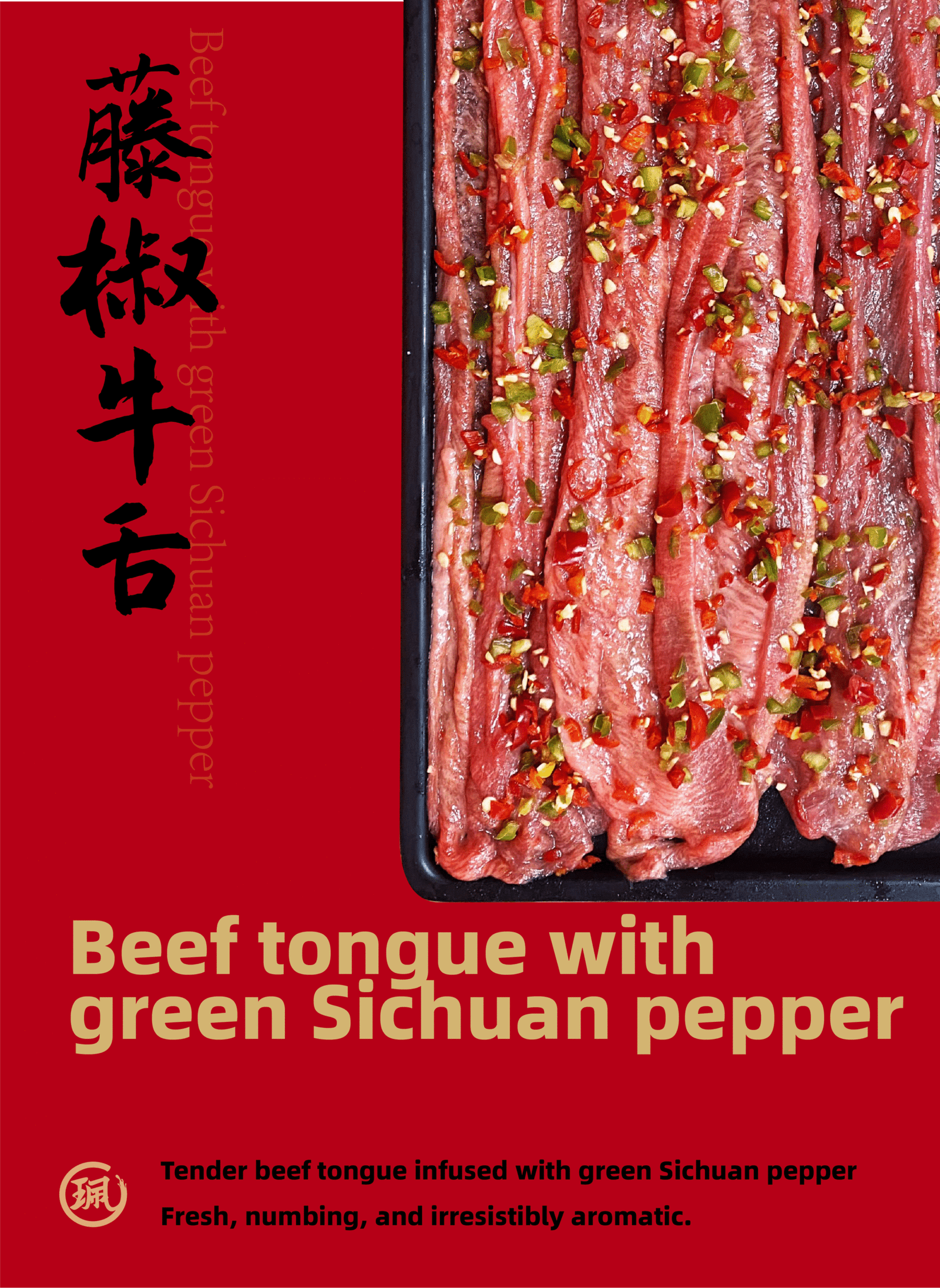 A refreshing twist on spice — tender beef tongue meets the citrusy aroma of green Sichuan pepper. Light, numbing, and deeply flavorful.